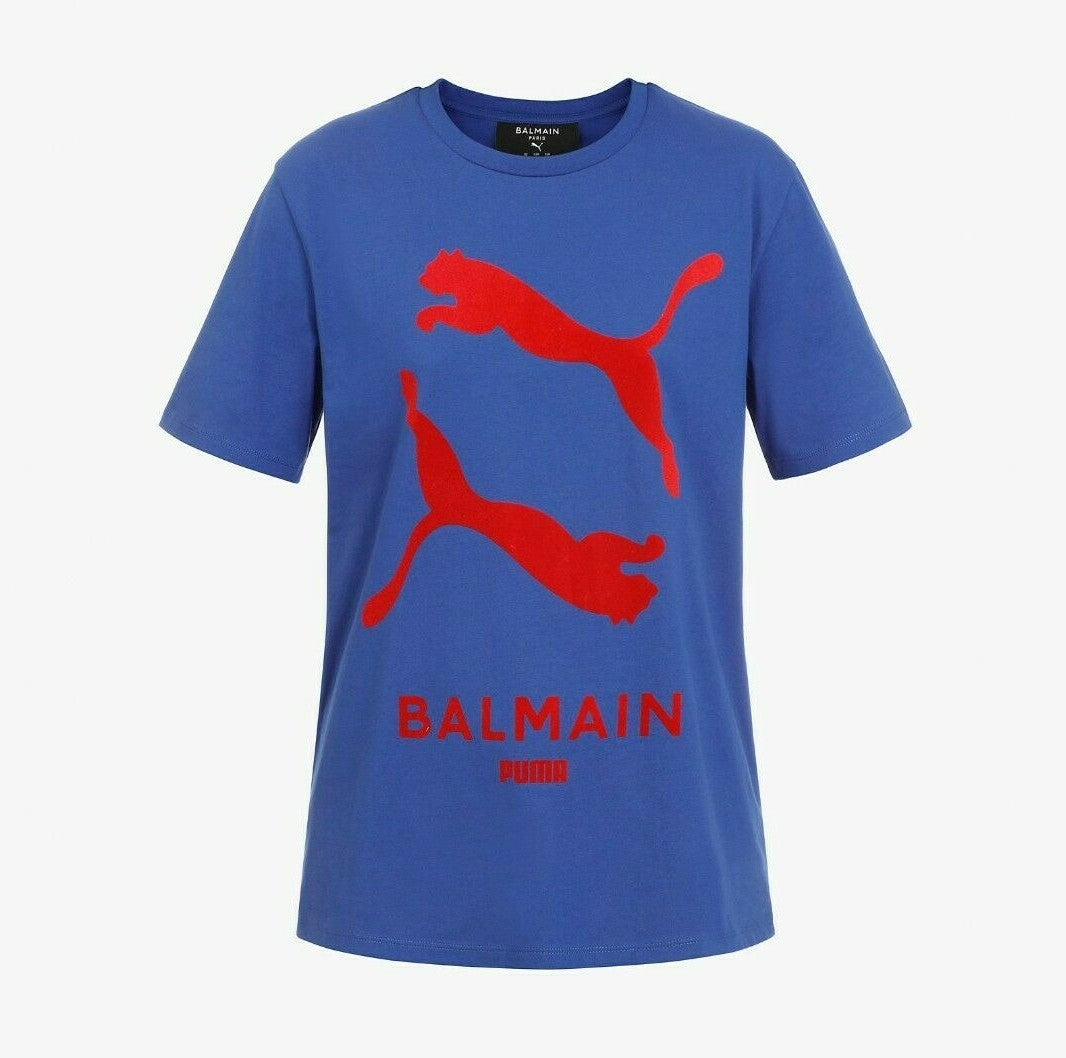 Balmain x Puma Women's Graphic Logo Tee / Blue Red / BNWT / RRP £100