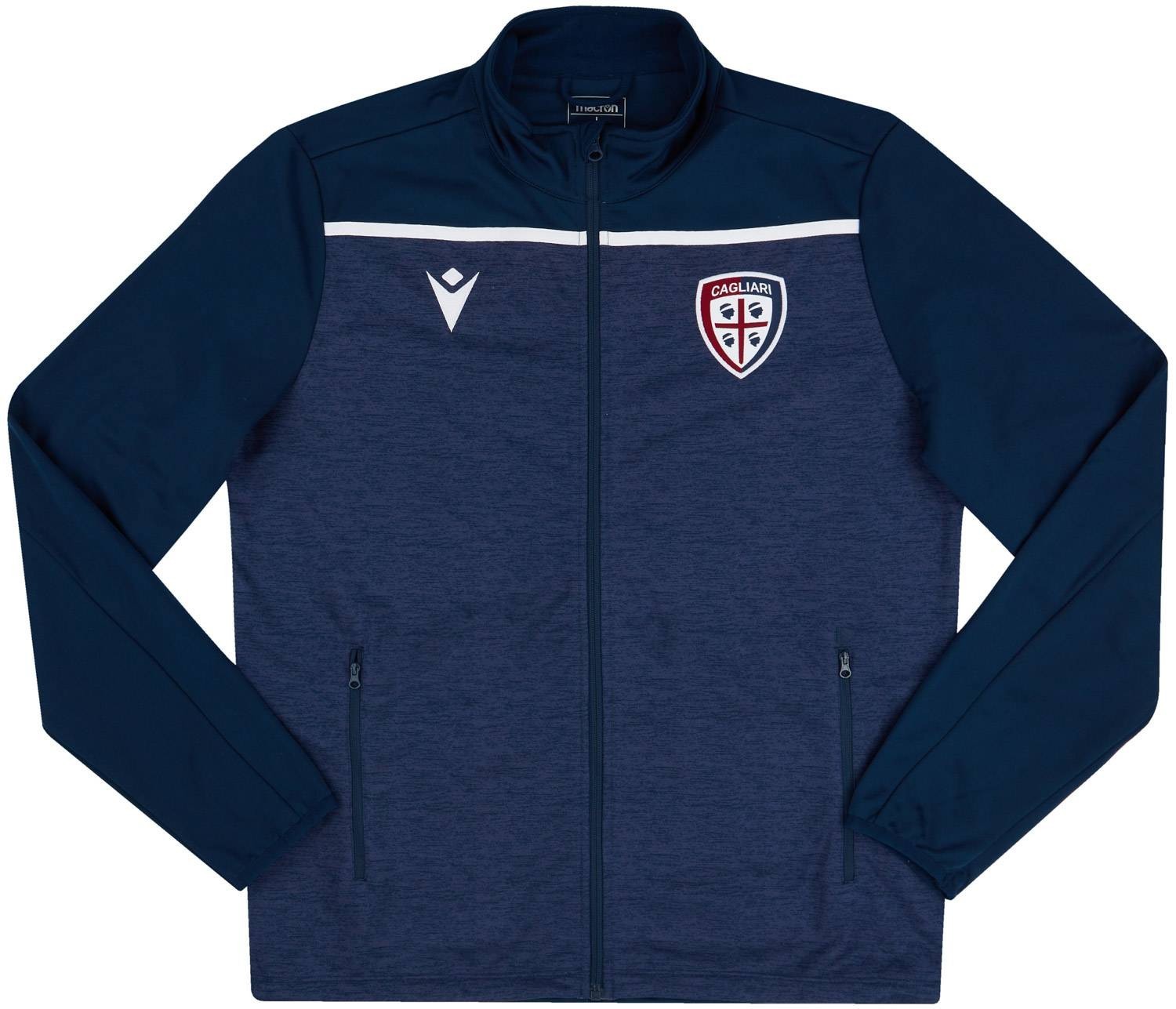 Track jacket as worn during Cagliari's 2019-20 Serie A campaign when the Sardinian outfit enjoyed a strong start to the season under Rolando Maran. The side spent several weeks in the European qualification spots before eventually finishing 14th after a late dip in form.