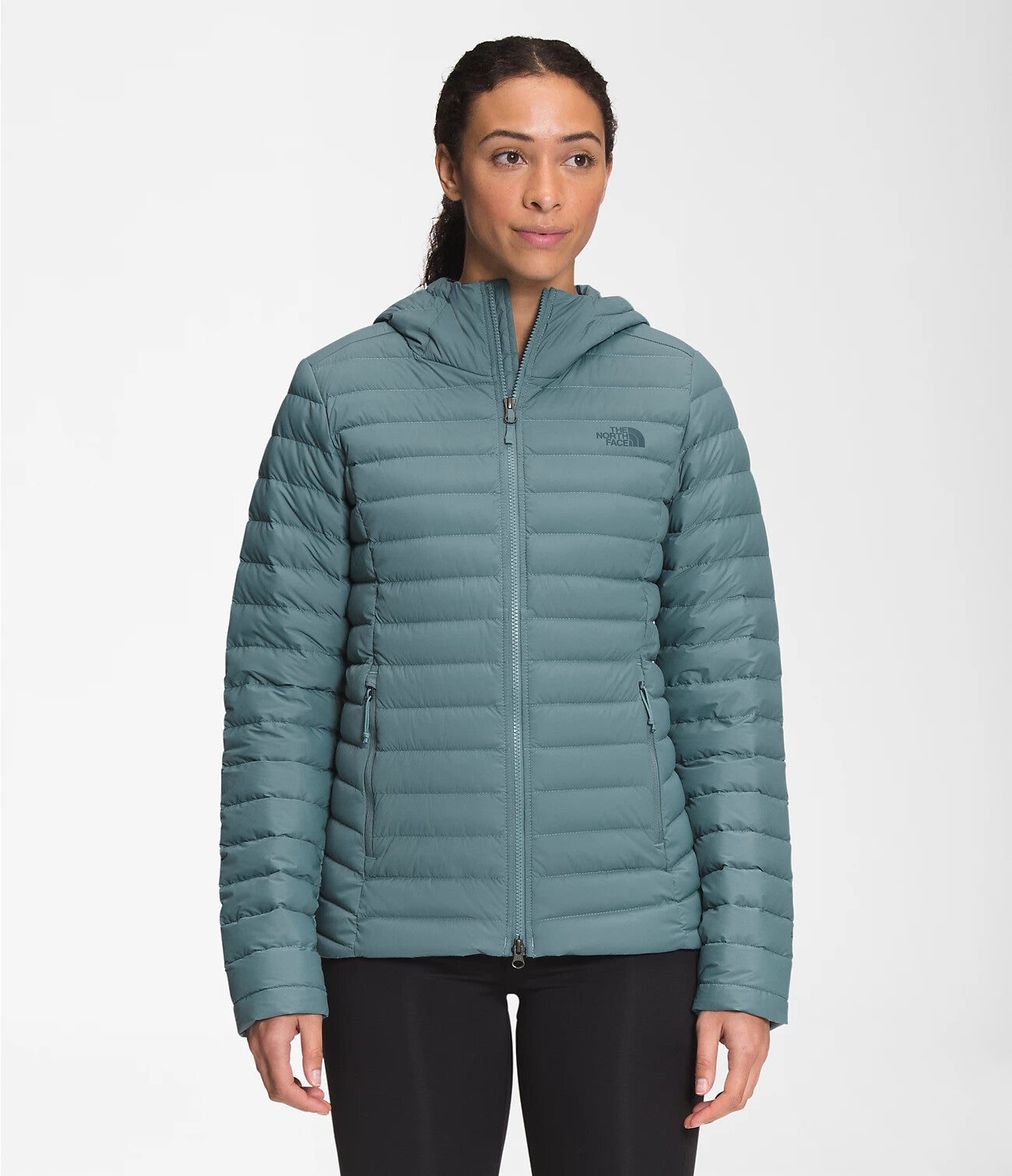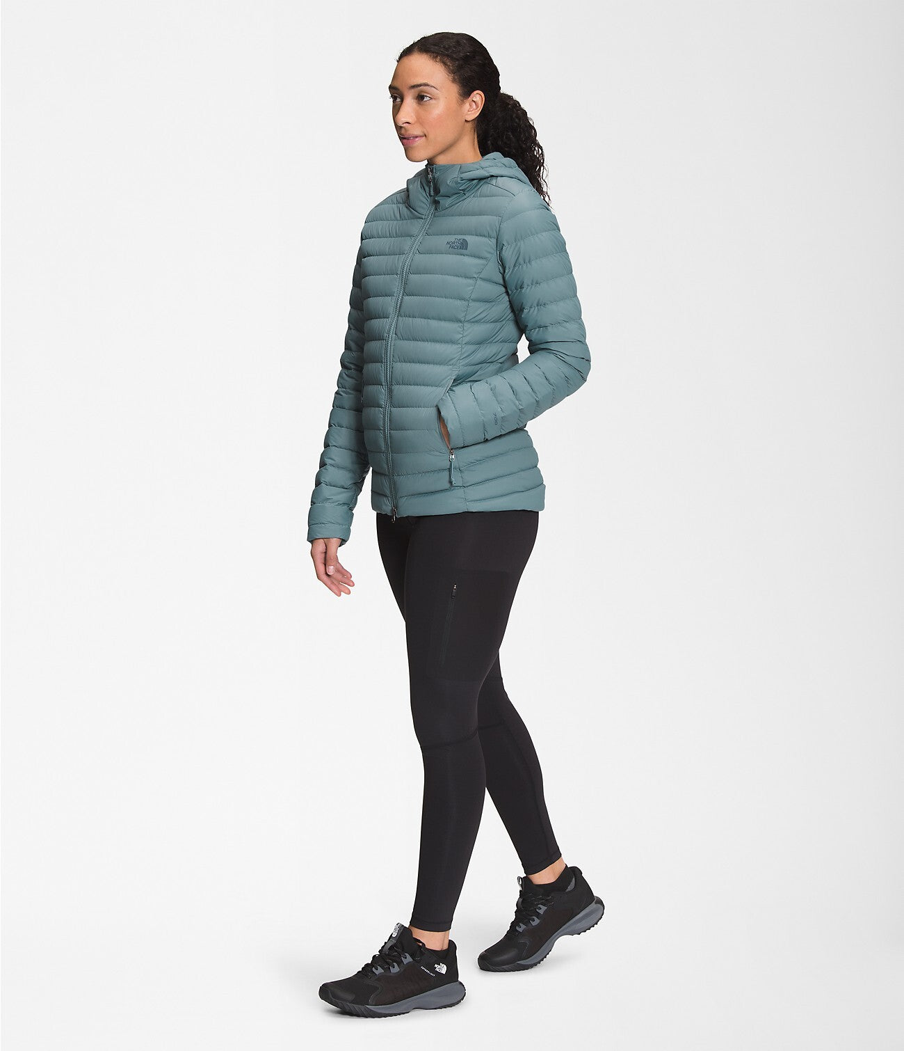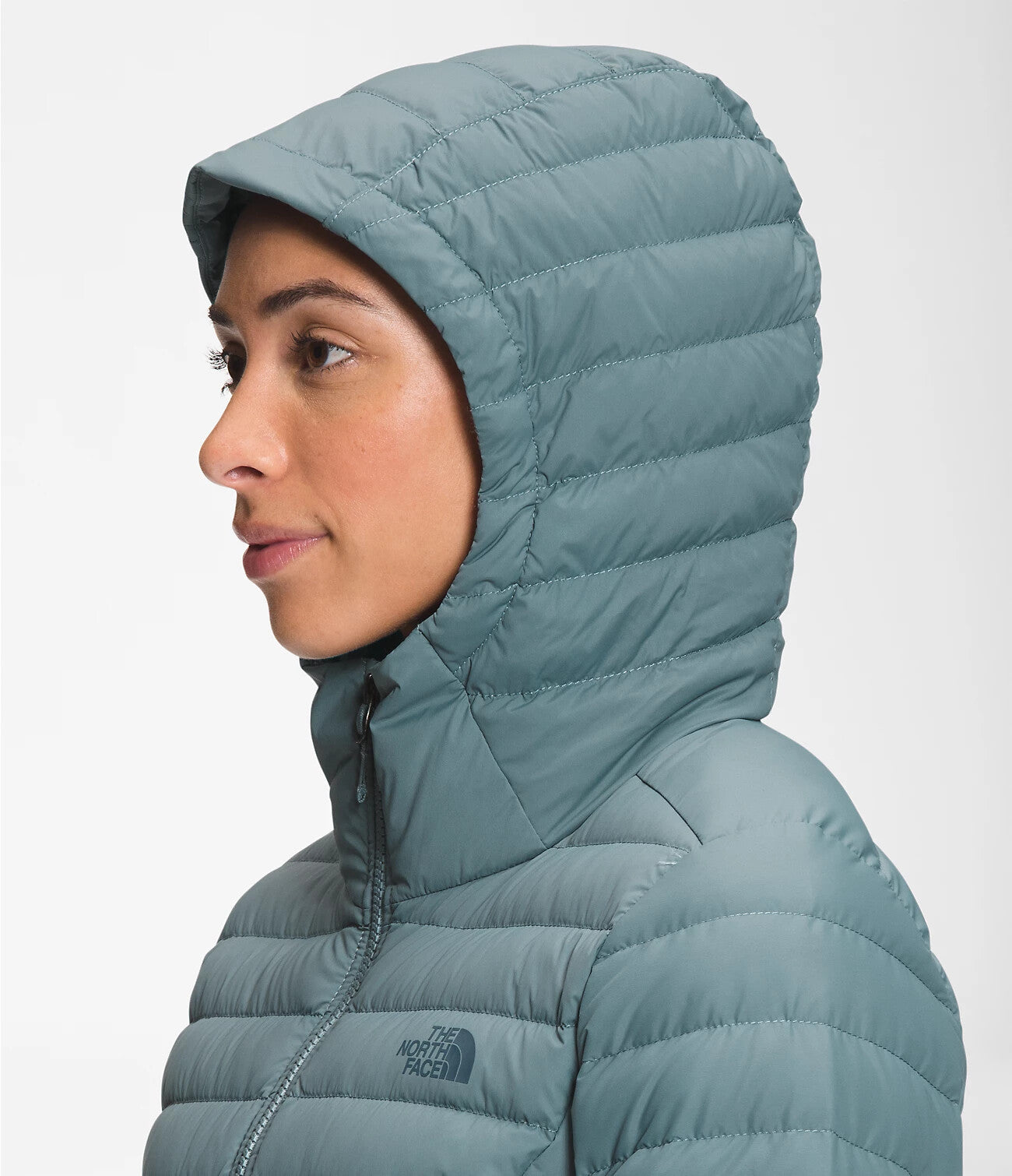 The women's stretch-down hoodie allows air to pass through to
