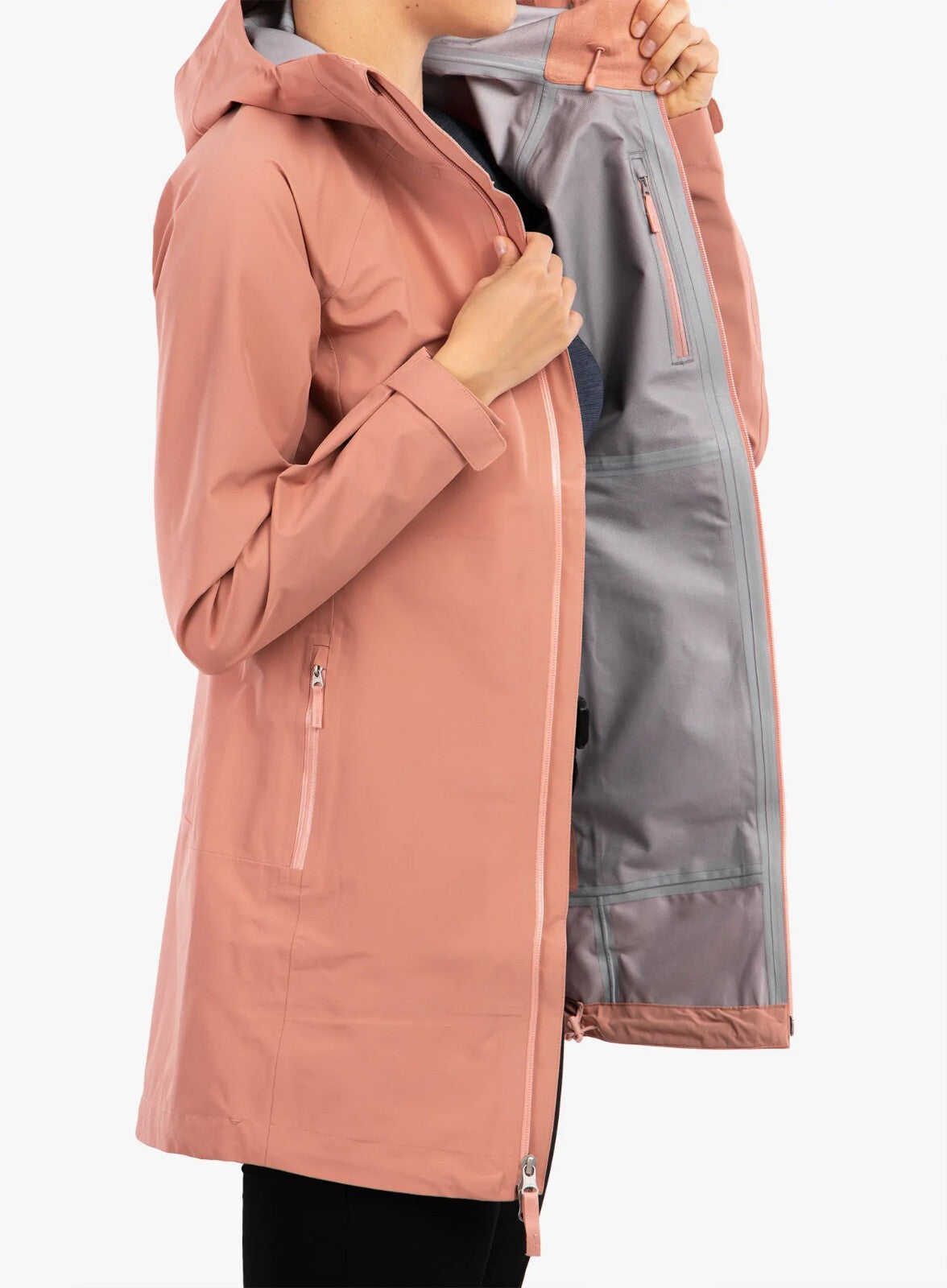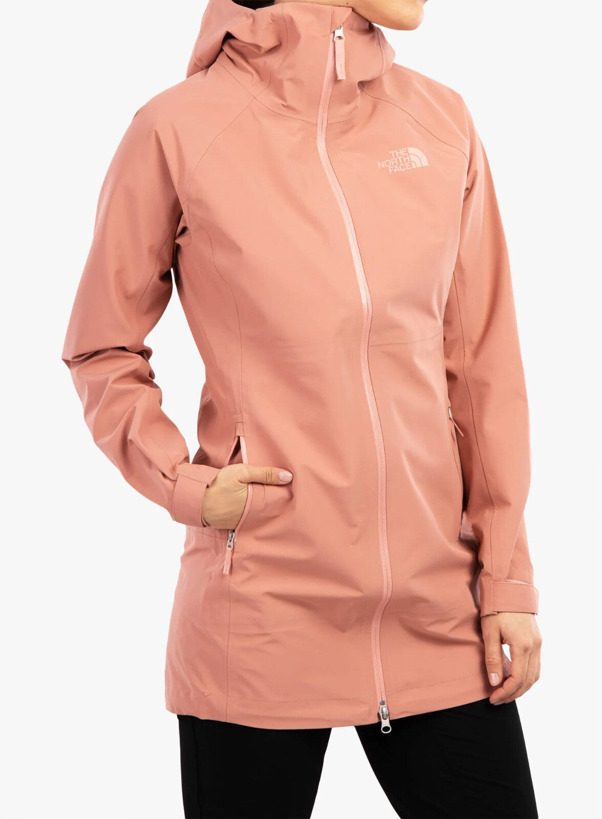 enhances water repellency while the reverse-coil full-length center front zip,